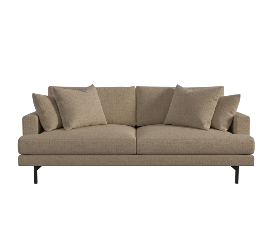 Harper sófinn er hannaður með áherslu á einfaldleika, hlýju og notalegheit. Áklæðið er í dröppuðum lit sem fellur auðveldlega að mismunandi rýmum. Fæturnir eru svartir sem mynda fallegt jafnvægi við drappaða tóna áklæðisins.