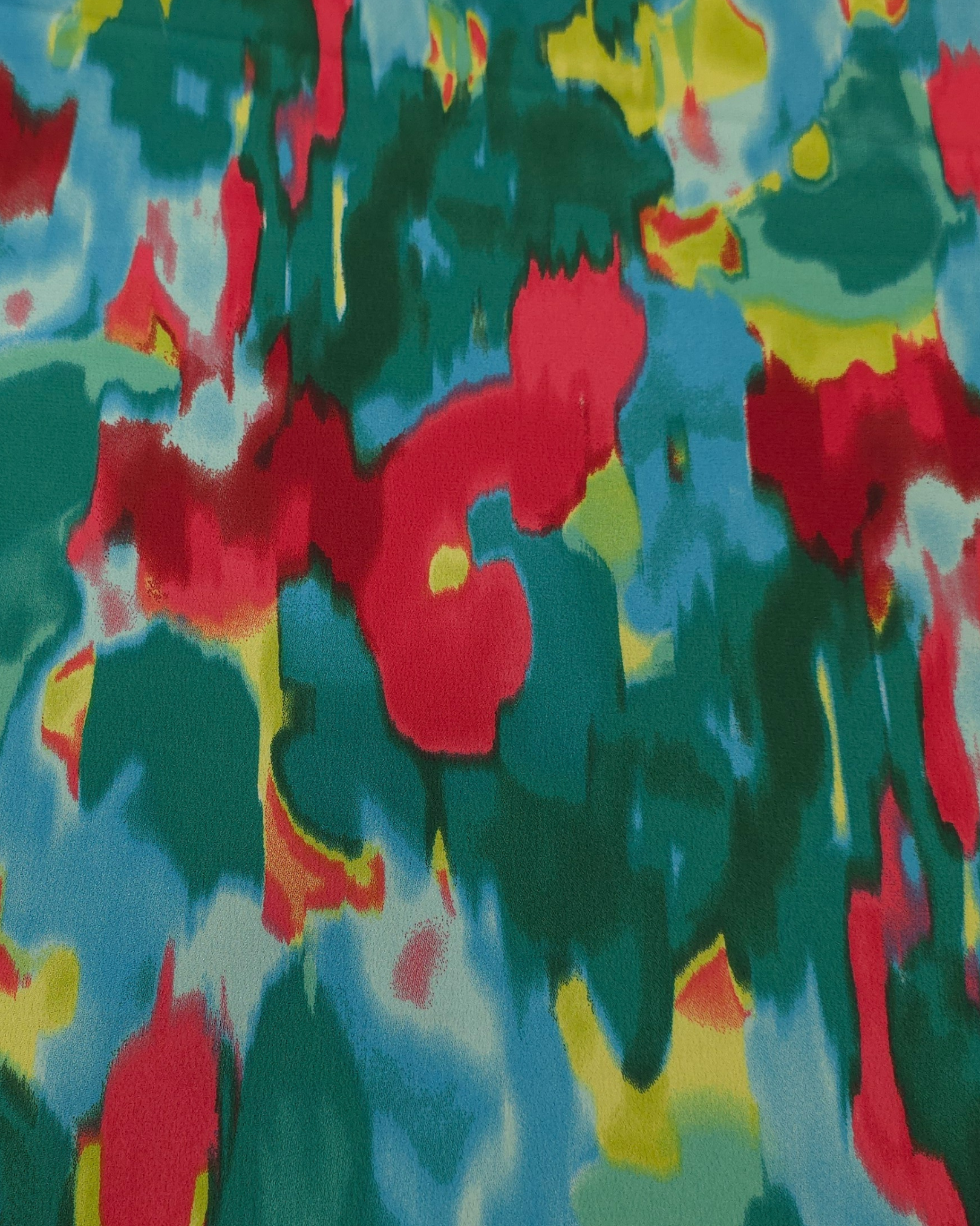 Létt og glansandi prentað efni með fallegu mynstri sem skapar hreyfingu og litadýpt.