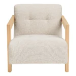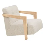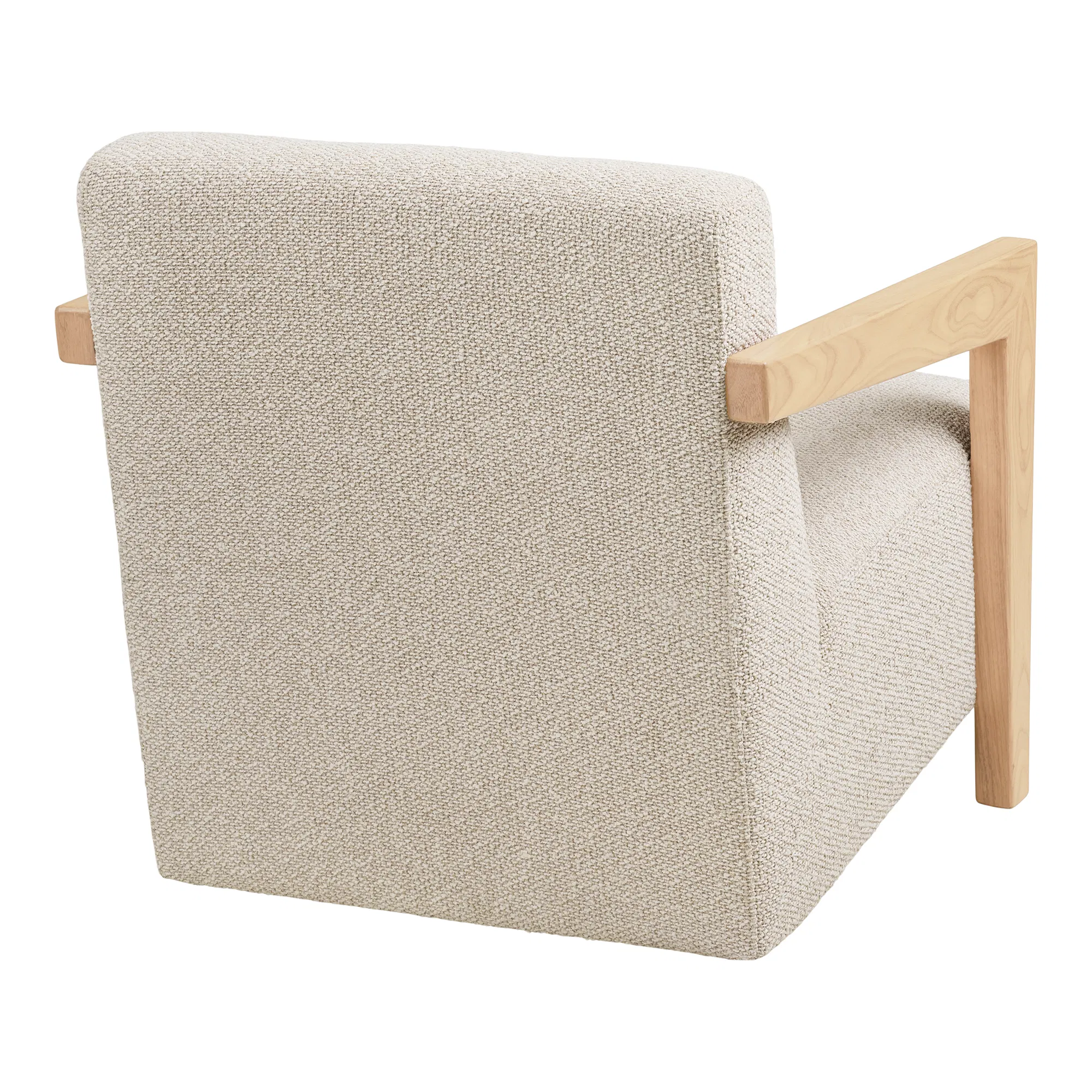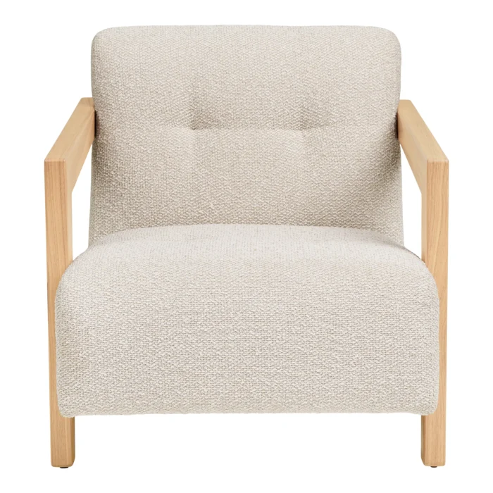 Minimalískur og töff hægindastóll frá danska merkinu House Nordic. Stóllinn er klæddur í beige áklæði með eikar örmum.