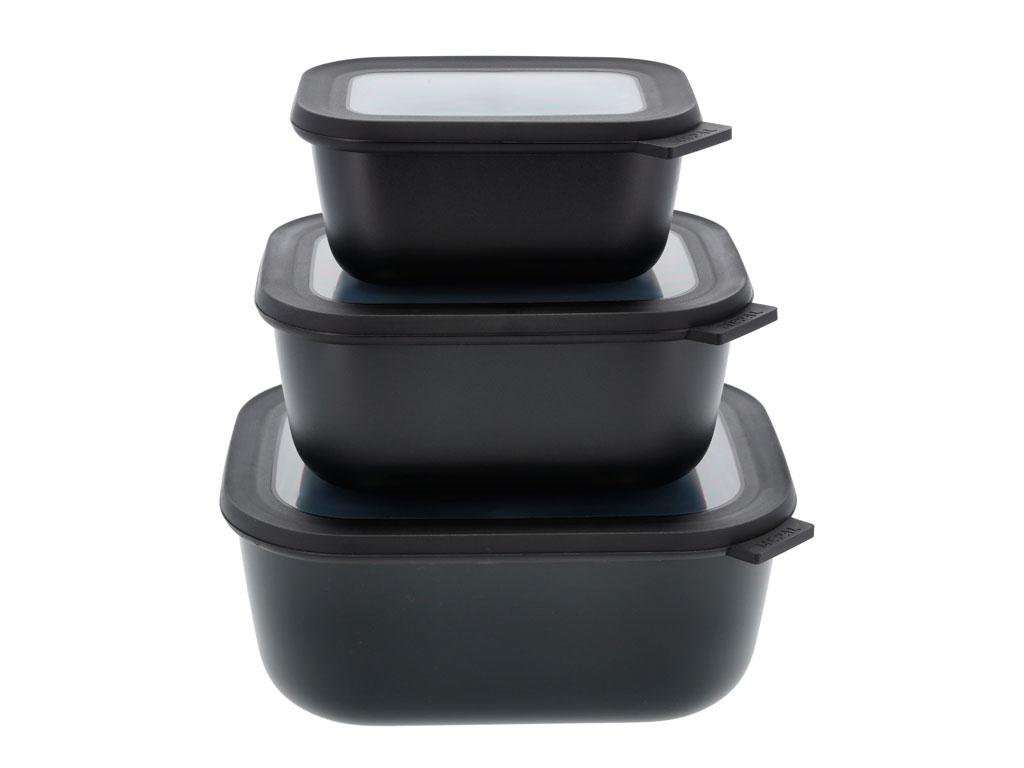 Mepal – Cirqula skálasett með loki 3stk háar ferkantaðar black