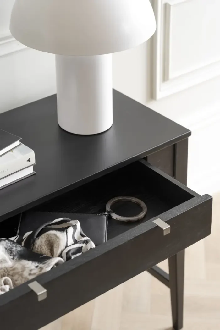Confetti consoleborð frá sænska merkinu Rowico. Þetta stílhreina og fallega consoleborð sameinar skandinavíska hönnun og vandaðað efni. Borðið er úr svartri lakkaðri eik sem gefur því nútímalegt og stílhreint yfirbragð. Í borðinu er einnig rúmgóð skúffa.