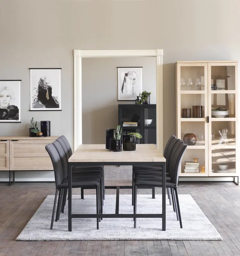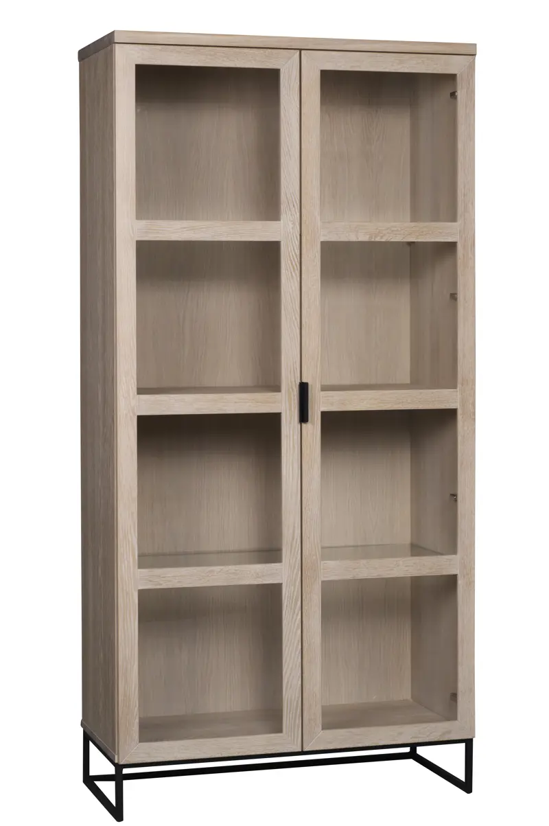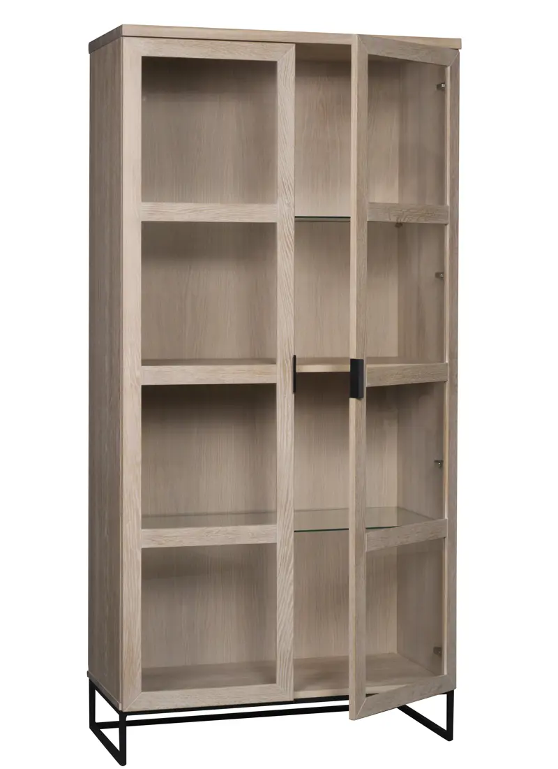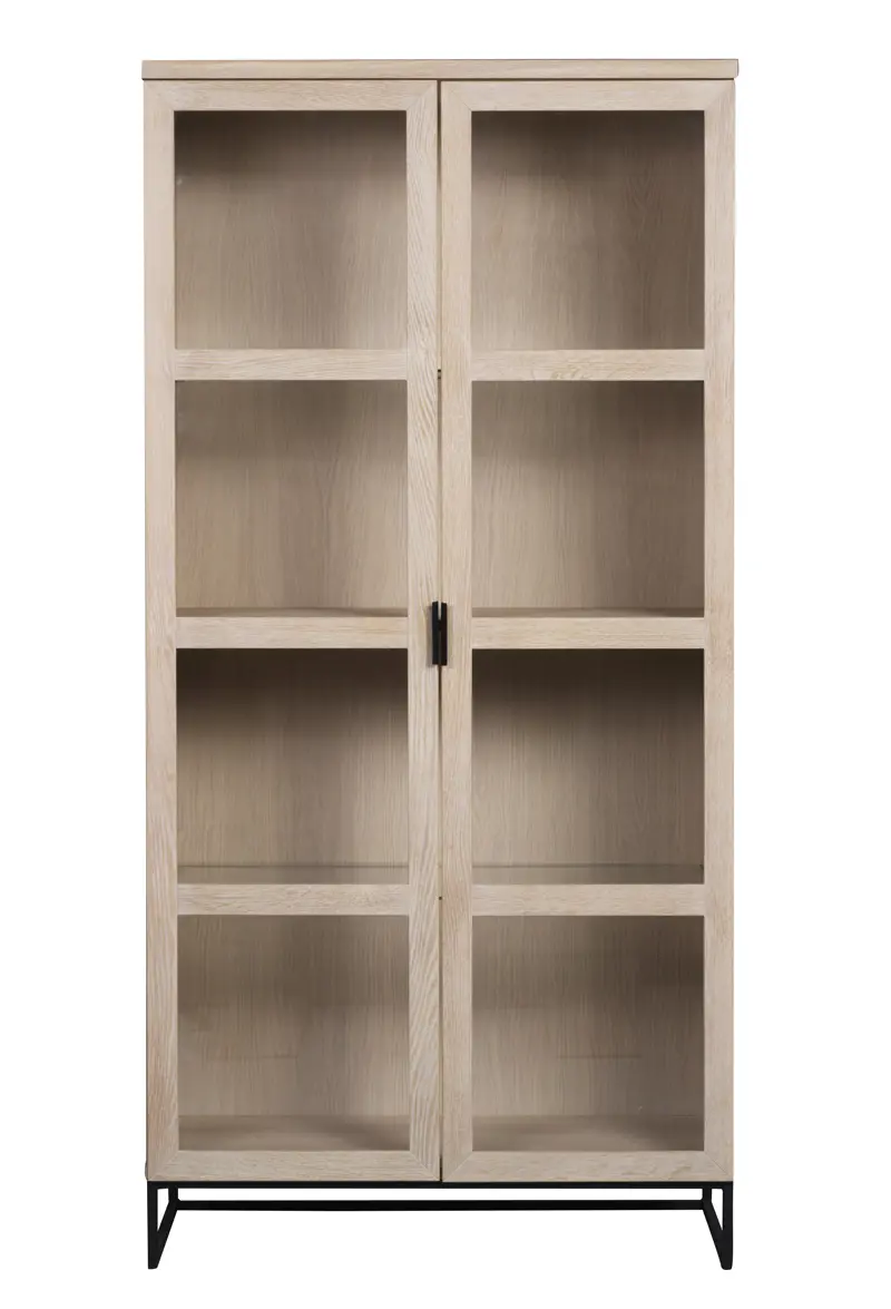 Everett er vandaður og glæsilegur glerskápur frá Rowico home úr hvíttaðri gegnheilli eik með svörtum stál fótum og handföngum ásamt glerhurðum með mjúkri lokun.