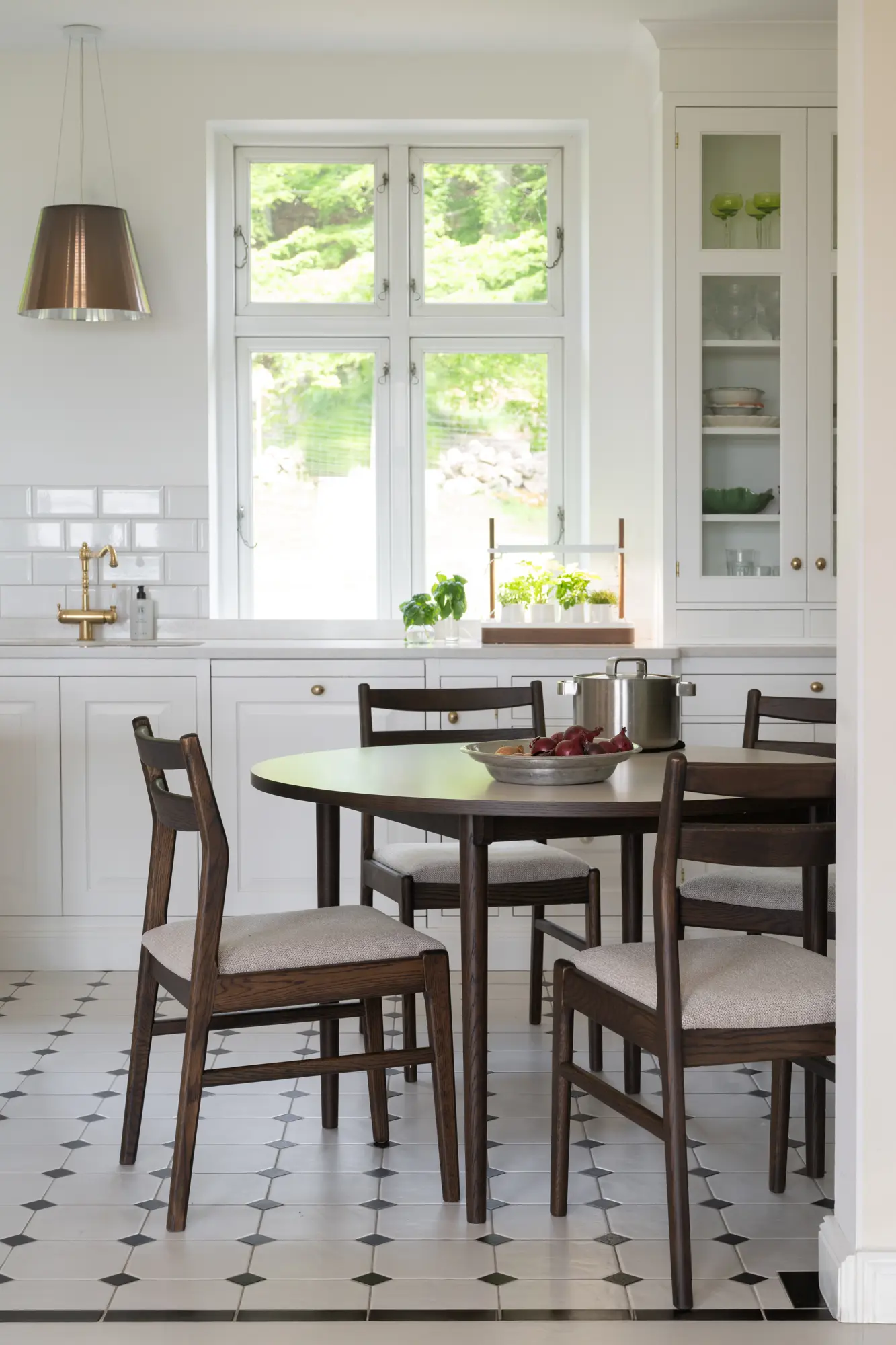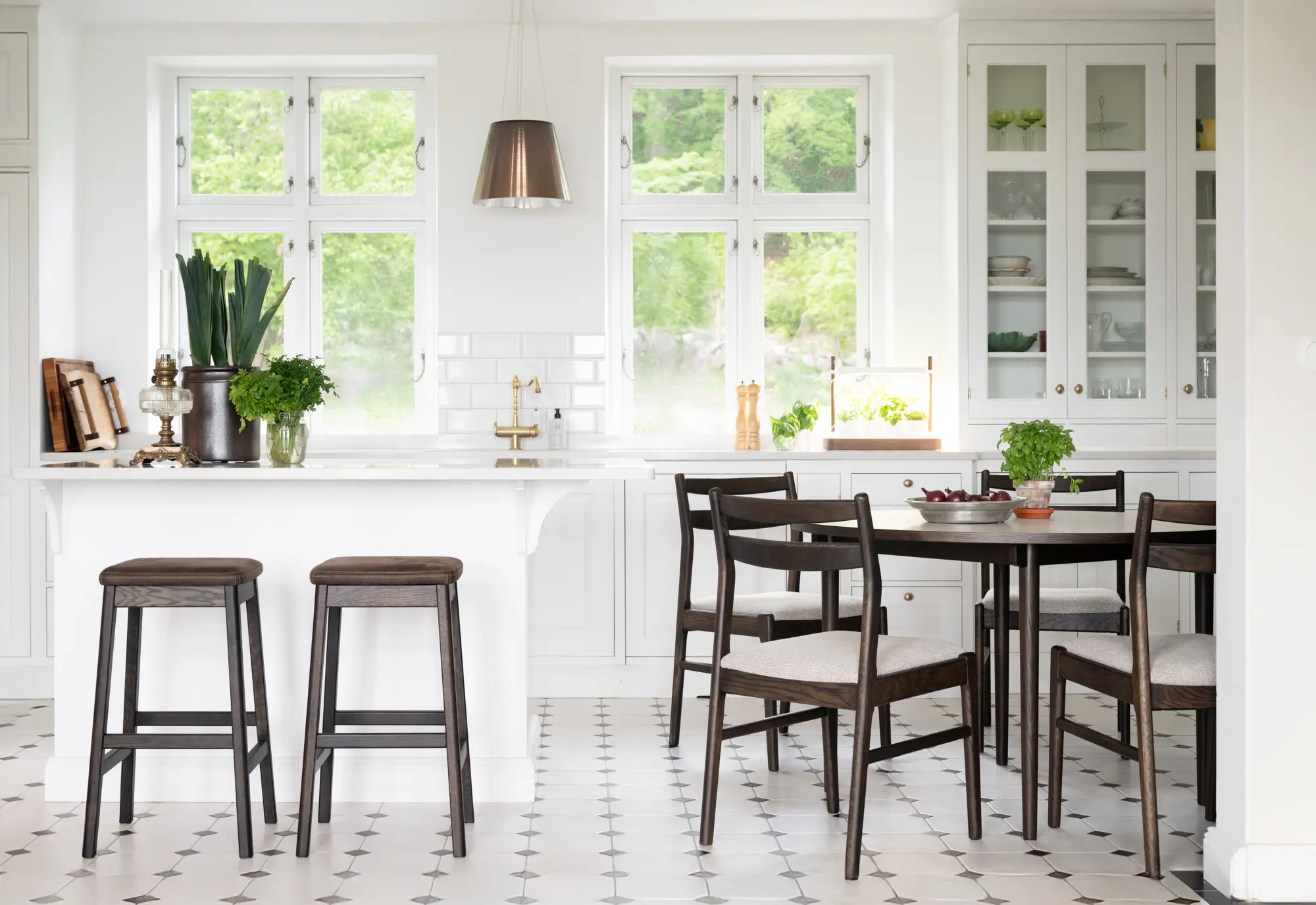 Fairmount borðstofuborðið er glæsilegt borð úr brúnni eik með léttu og fáguðu yfirbragði. Borðplatan er úr slitsterku ljósu laminate sem er bæði rispuþolið og rakavarið og hentar því vel til daglegrar notkunar.