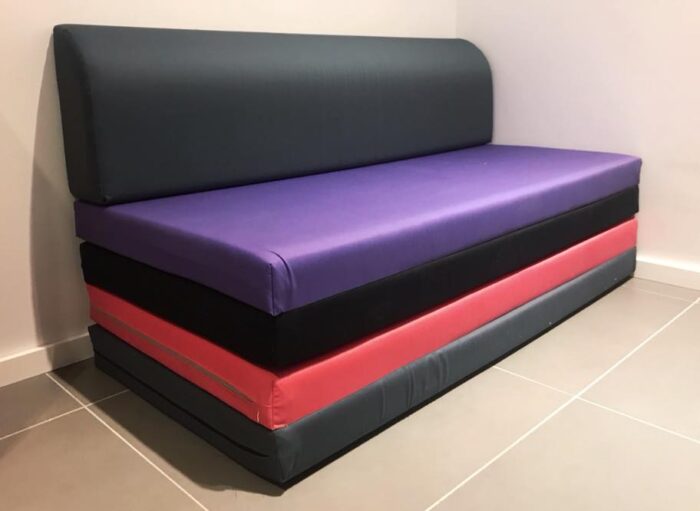 Úr smiðjum Vogue: Sérsmíðaður íslenskur flettisófi með fjórum svampdýnum ásamt baki. Hægt er að velja um ótal mismunandi áklæði og liti á sófann. Sófann má finna á öllum helstu leikskólum landsins en hann er einnig sérstaklega vinsæll í barna- og/eða gestaherbergi. Sófinn er fáanlegur í mörgum stærðum en einnig er hægt að sérsmiða hann. Dýnurnar eru fastar saman og hægt er að draga sófann í sundur til þess að búa til skemmtilega leikdýnu eða nota sem dýnu fyrir gesti.
