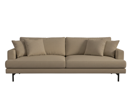Harper sófinn er hannaður með áherslu á einfaldleika, hlýju og notalegheit. Áklæðið er í dröppuðum lit sem fellur auðveldlega að mismunandi rýmum. Fæturnir eru svartir sem mynda fallegt jafnvægi við drappaða tóna áklæðisins.