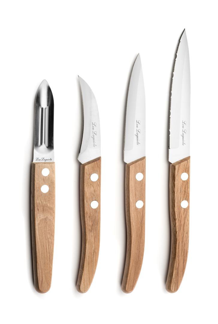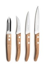 Vandað hnífasett frá Amefa með þremur hnífum og flysjari. Hnífarnir liggja vel í hendi og eru úr endingargóðu stáli.