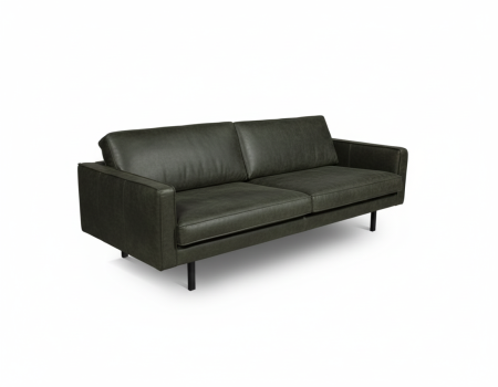 Stílhreinn og nútímalegur sófi frá Primavera úr dökkgrænu (Col.11) pressuðu leðuráklæði með svörtum stálfótum. Áklæðið er 70% leður og 30% pólýester. Sófinn er afar nettur og þægilegur og er fáanlegur í fjórum mismunandi lengdum
