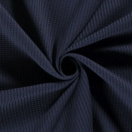Teygjanlegt prjónað waffle-efni með mjúkri og mattri áferð.