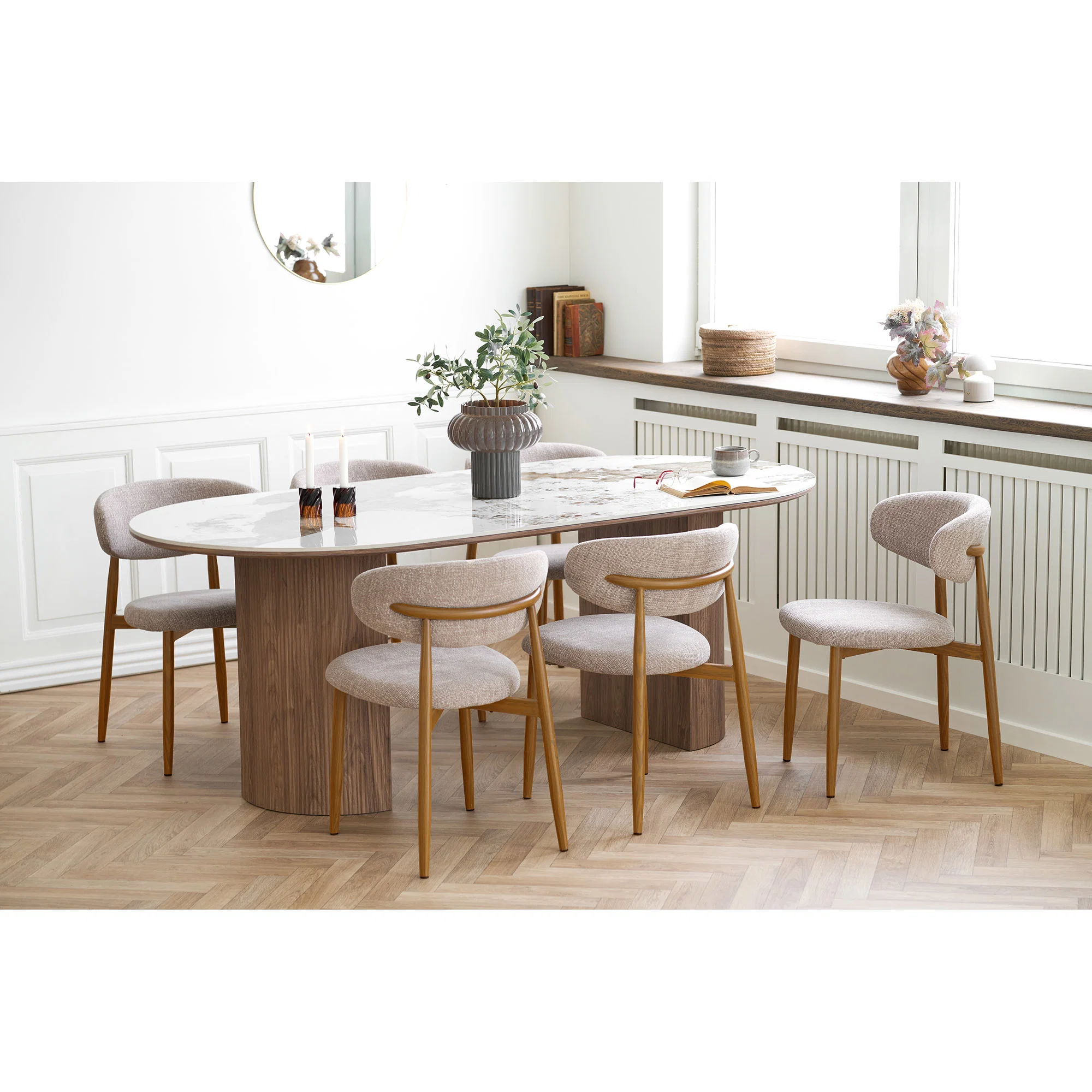 Levanto borðstofustólinn er glæsilegur borðstofustóll frá danska merkinu House Nordic. Stólinn er með sandlitaðri sessu og eikar fótum.