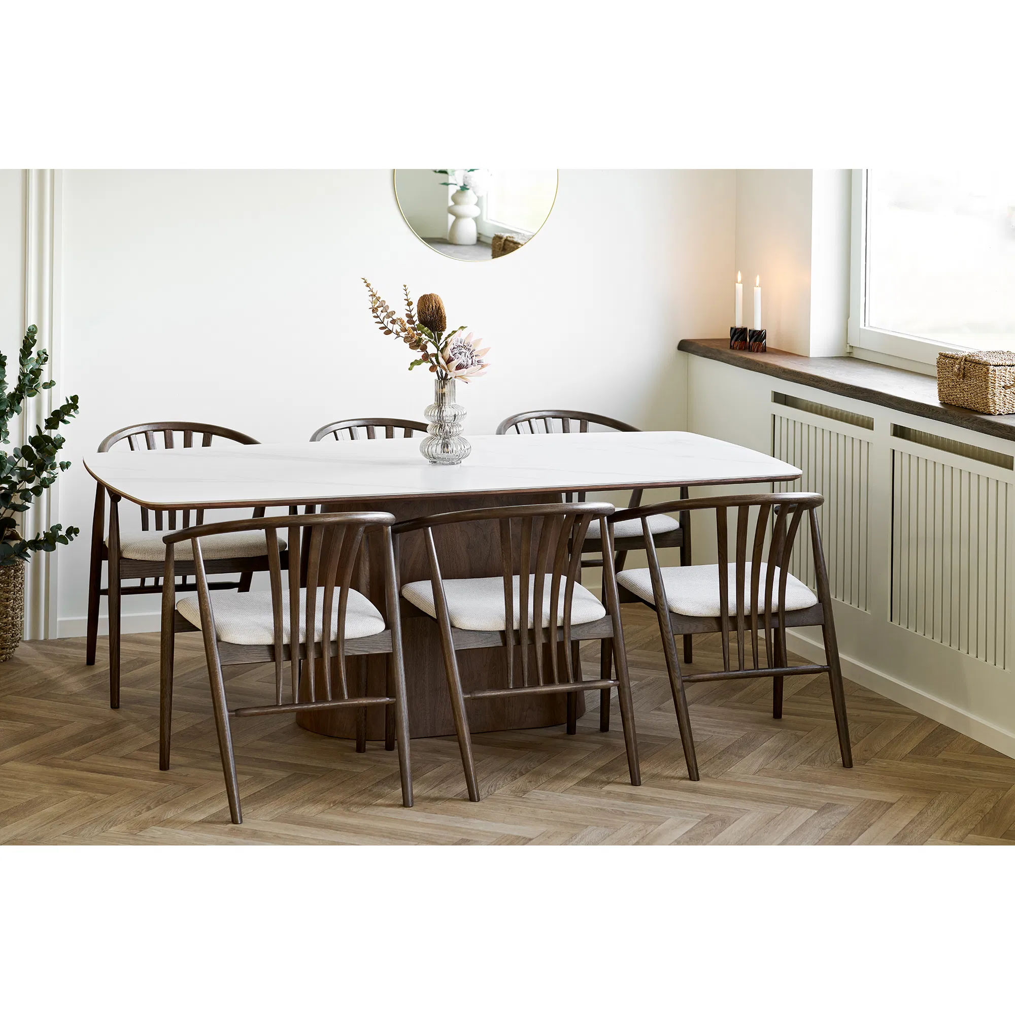 Stórglæsilegt dökkbrúnt Noli borðstofuborð með hvítri keramik borðplötu frá danska merkinu House Nordic.