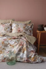 Sængurverið er úr satínofinni bómull sem gefur því mjúka áferð og náttúrulegan gljáa. Satínvefnaðurinn skapar slétt yfirborð sem gerir efnið þægilegt viðkomu.