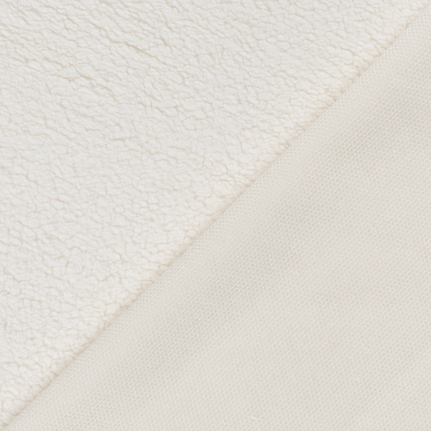 Mjúkt og þétt sherpa efni með möttu yfirborði sem gefur hlýja og fallega áferð.
