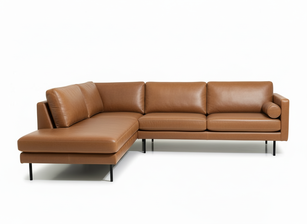 Vandaður og stílhreinn Sicilia hornsófi frá Kauno Baldai sem er innblásinn af skandinavískum minímalisma. Sófinn er úr fallegu, koníaksbrúnu leður áklæði og er einstaklega þægilegur.