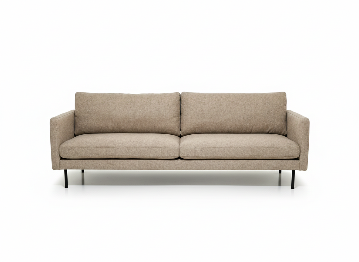 Vandaður og stílhreinn þriggja sæta Sicilia sófi frá Kauno Baldai sem er innblásinn af skandinavískum minímalisma. Sófinn er úr fallegu, ljósbrúnu tau áklæði og er einstaklega þægilegur.