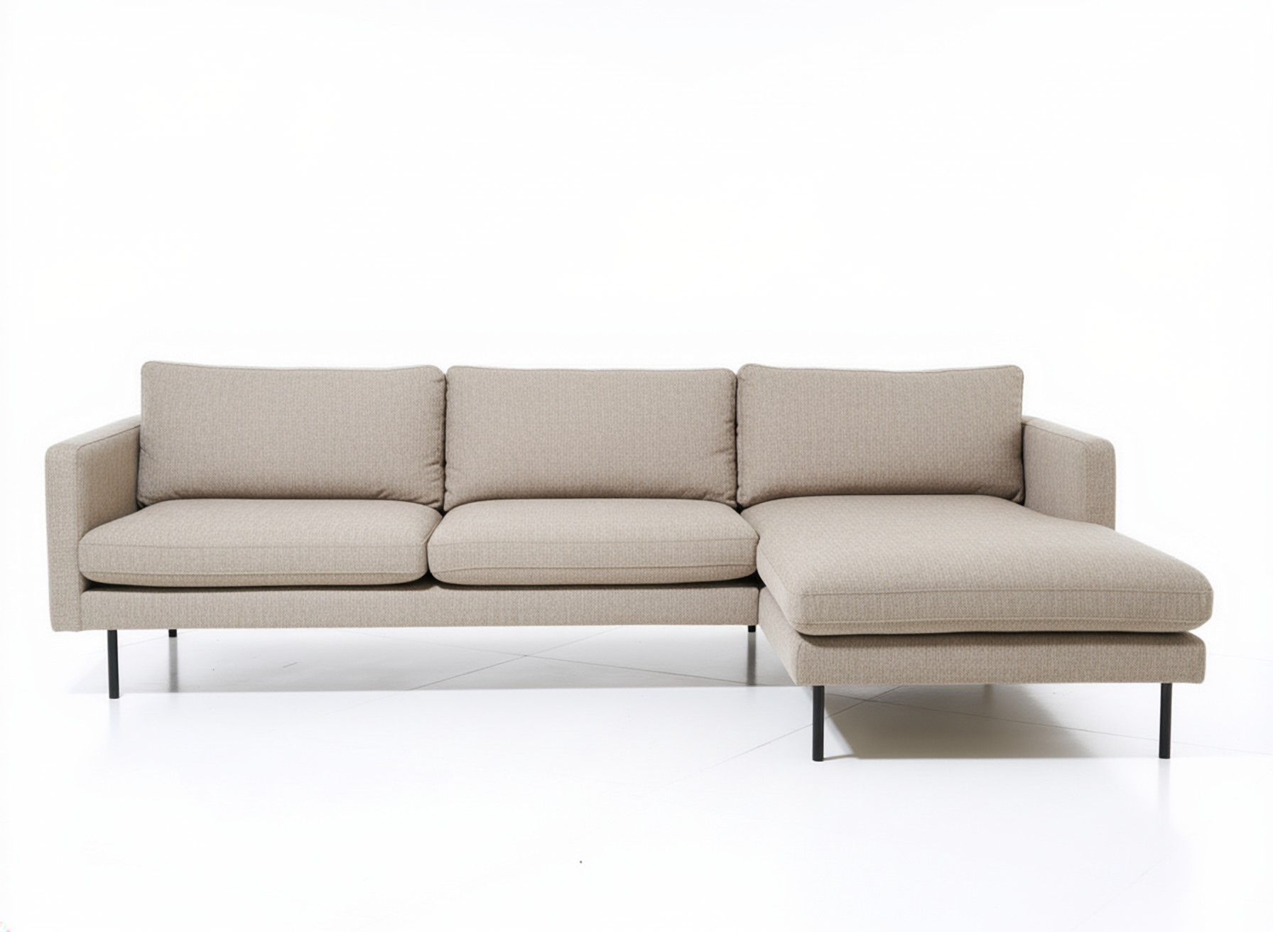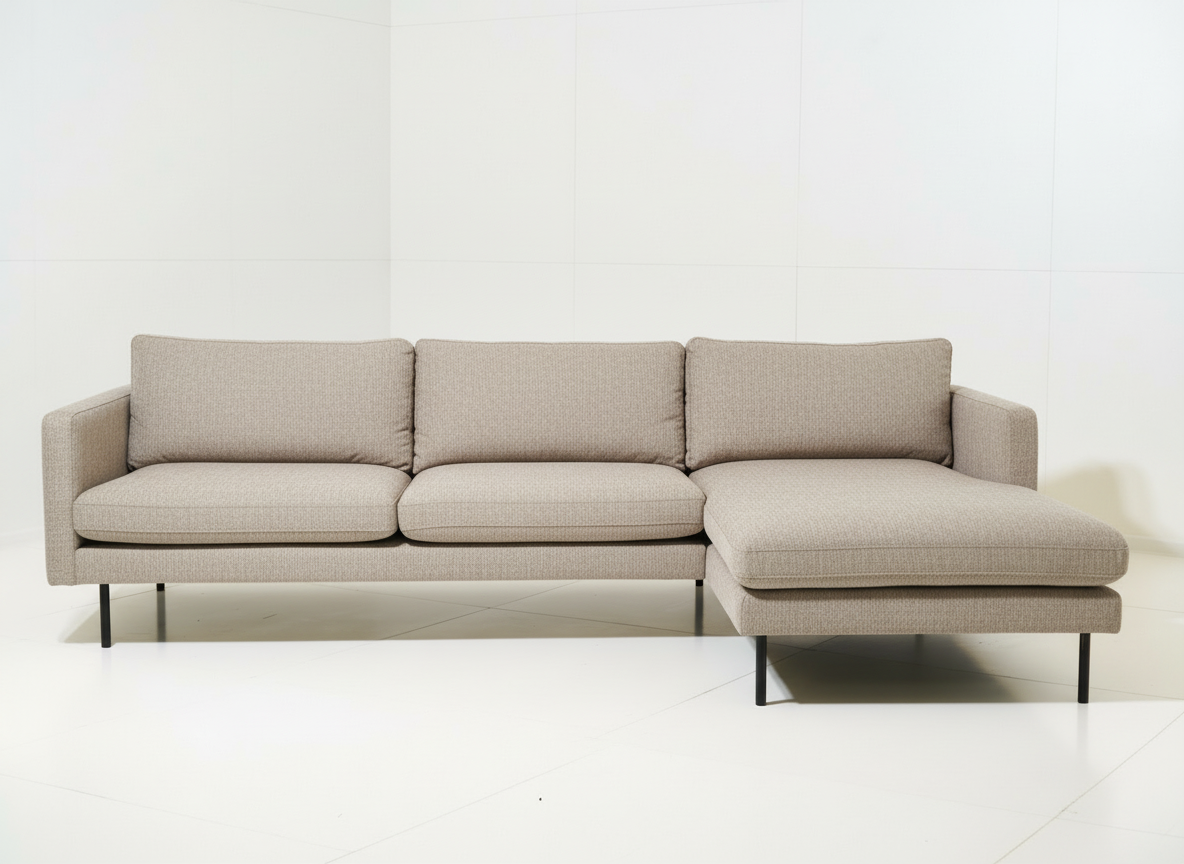 Vandaður og stílhreinn Sicilia tungusófi frá Kauno Baldai sem er innblásinn af skandinavískum minímalisma. Sófinn er úr fallegu, ljósbrúnu tau áklæði og er einstaklega þægilegur.