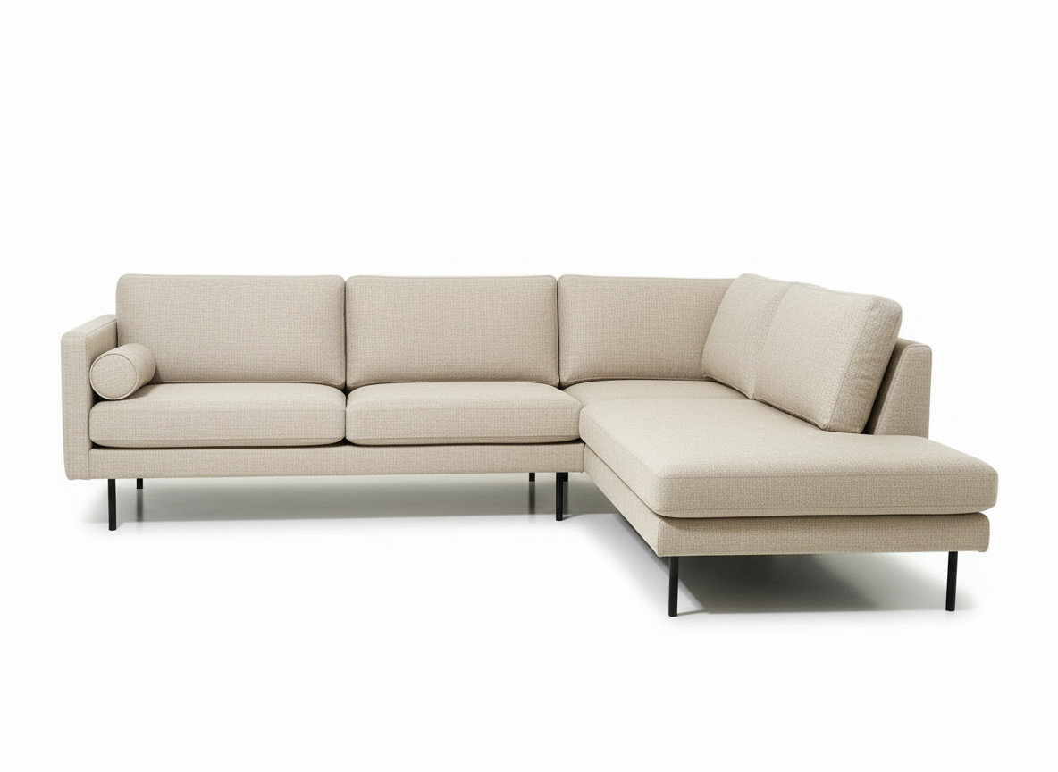Vandaður og stílhreinn Sicilia hornsófi frá Kauno Baldai sem er innblásinn af skandinavískum minímalisma. Sófinn er úr fallegu, ljósbrúnu tau áklæði og er einstaklega þægilegur.