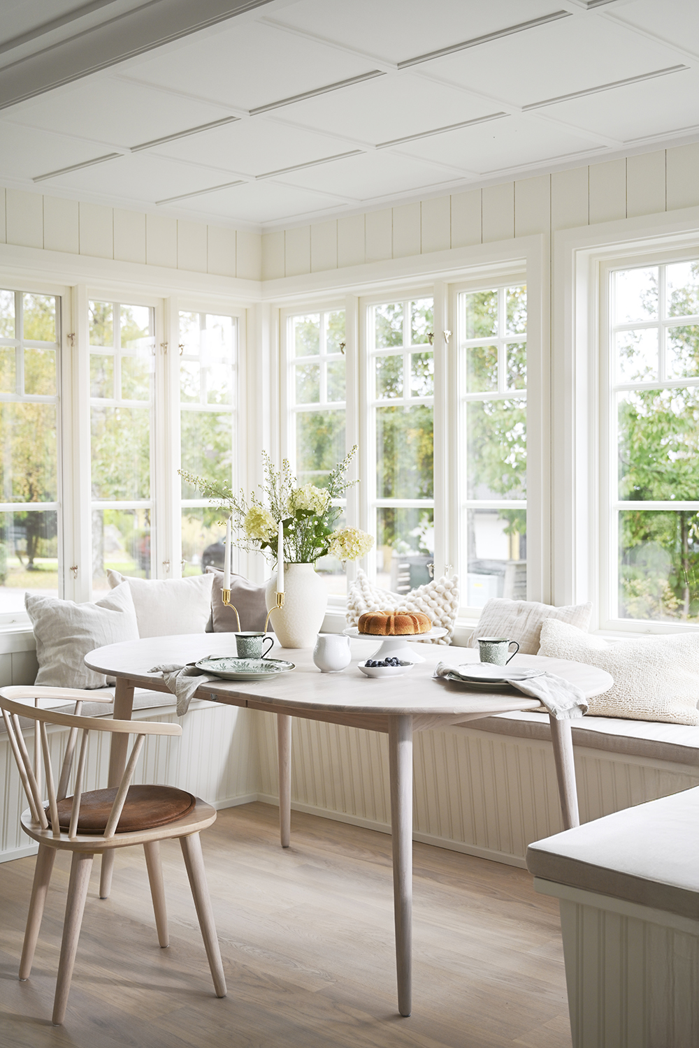 Borðið er með hvítþvegna olíuborna áferð fyrir betri endingu. Með borðinu fylgir ein 40 cm stækkun þannig að þú getir auðveldlega stækkað borðið þitt úr 170 cm í 210 cm en einnig er hægt að kaupa 40 cm innlegg til viðbótar, þannig að borðstofuborð verður 250 cm.