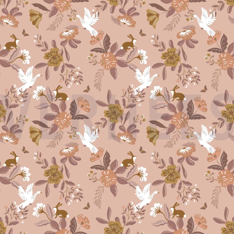 Poplin gots flowers (150 cm – Bleikur)